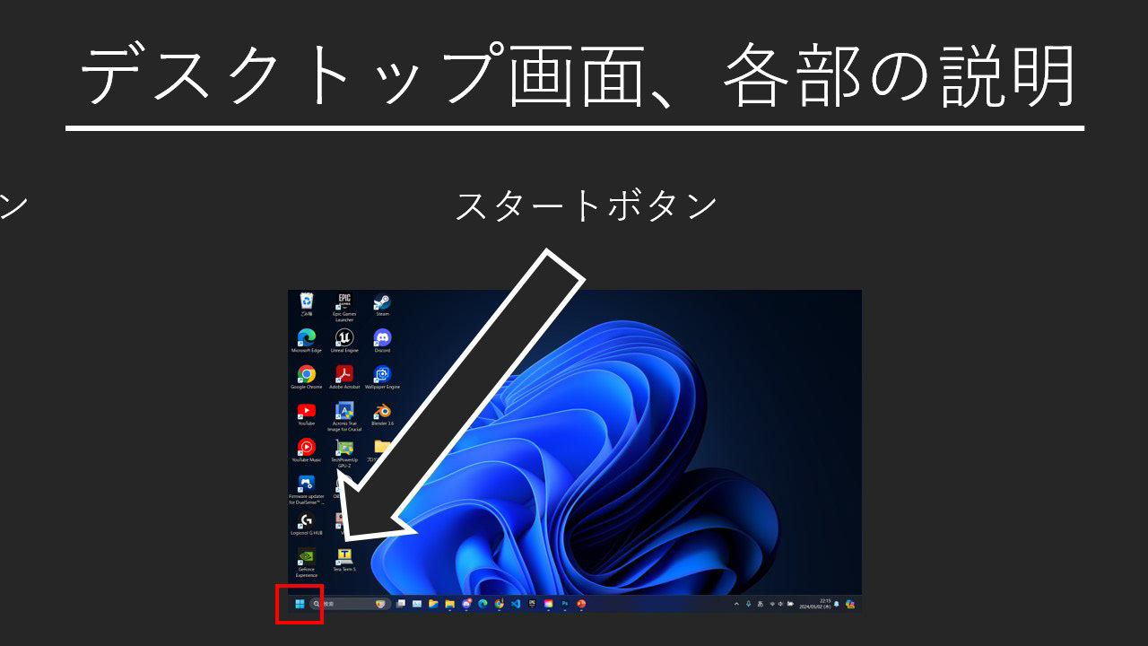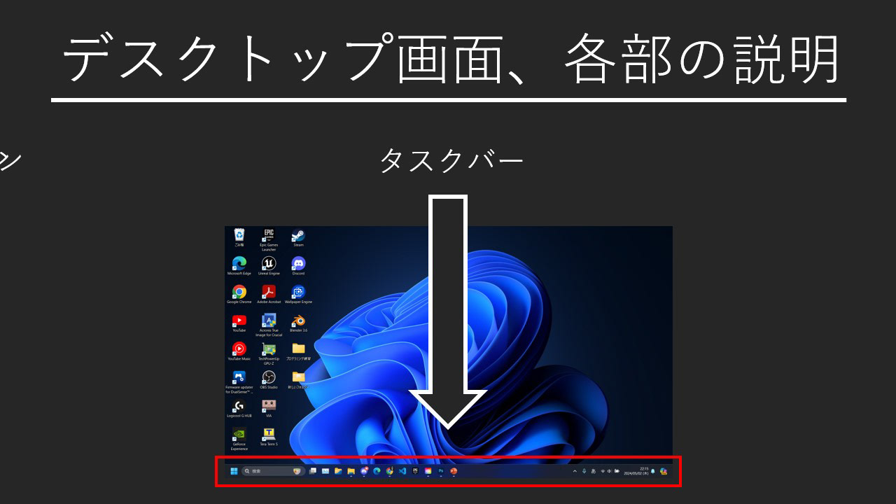 まずデスクトップ各部名称を解説します。